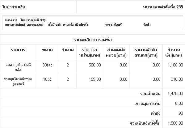 (4) เมื่อชำระเงินเสร็จแล้ว ให้ส่งหลักฐานการชำระเงินทางอีเมลเพื่อจัดส่งสินค้าต่อไป