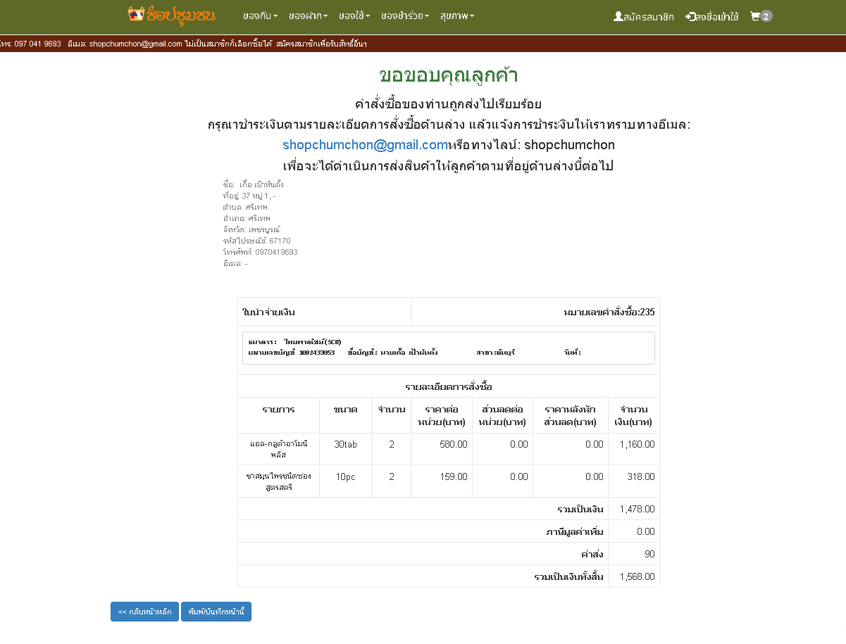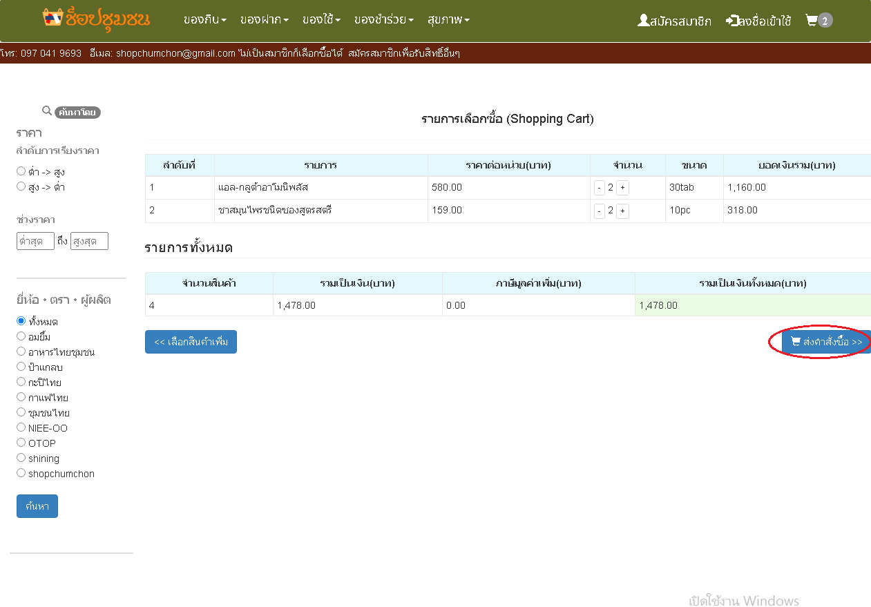 (3) คลิกที่ปุ่ม ส่งคำสั่งซื้อ เพื่อส่งคำสั่งซื้อและกรอกที่อยู่ที่ต้องการให้ส่งสินค้าและพิมพ์ใบรายการสำหรับนำไปชำระค่าสินค้า
