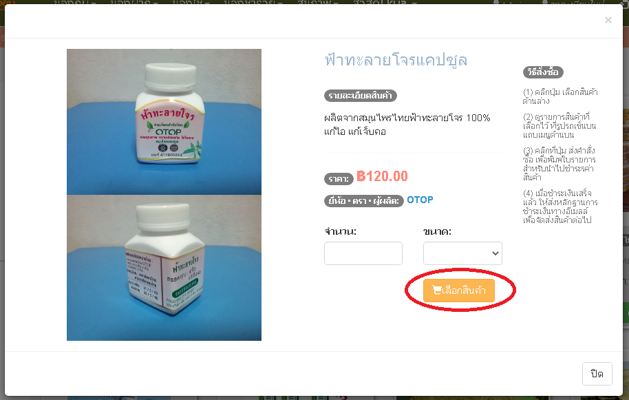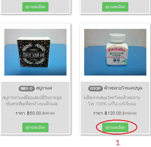 (1) ที่หน้าแสดงรายการสินค้า คลิกที่ปุ่มด้านล่างพื่อเข้ามาดูรายละเอียดสินค้าในหน้านี้ แล้วคลิก เพิ่มในรถเข็น เพื่อเลือกซื้อสินค้า